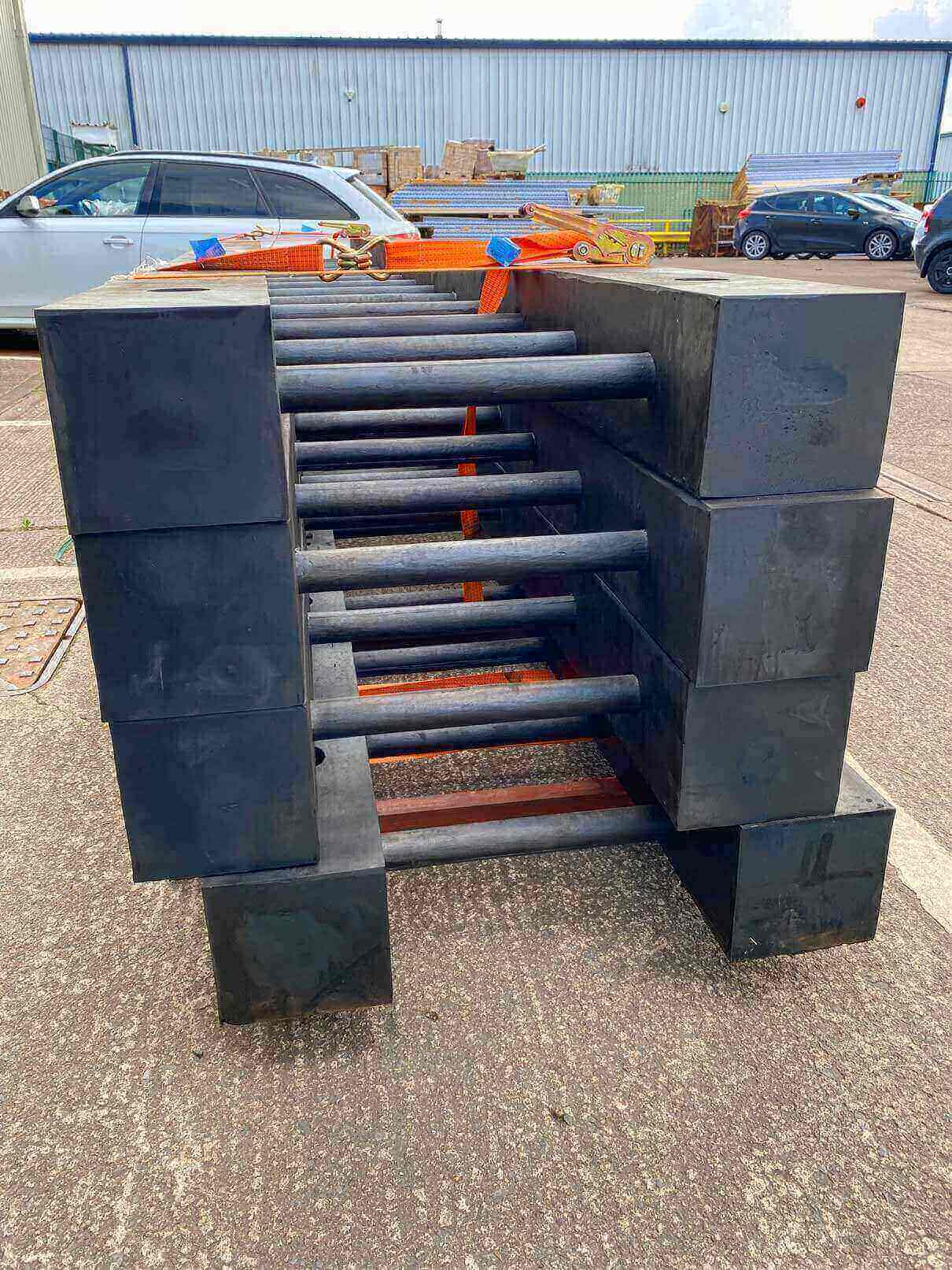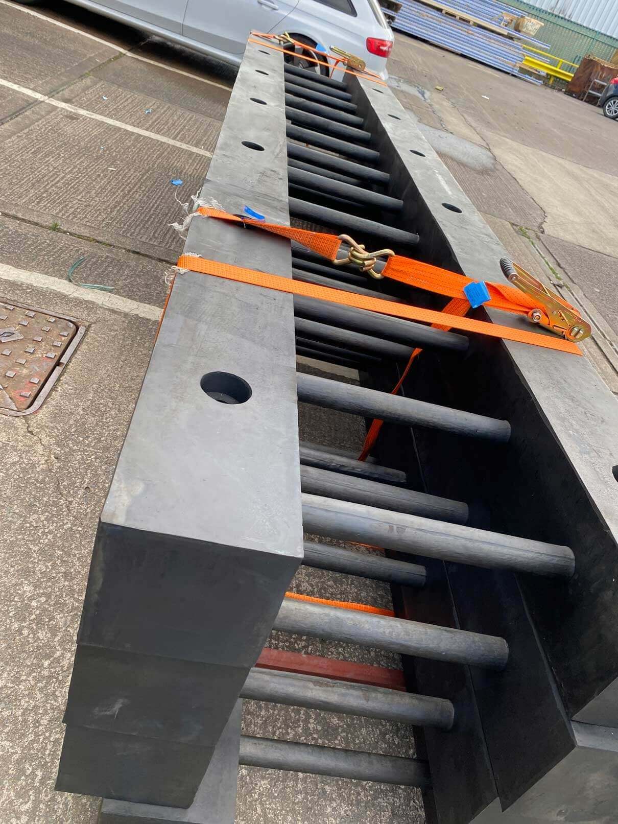 几段聊天和素描后, 我们决定一个250毫米宽和250毫米橡皮保险杠段设计允许个人使用橡皮跑步器,并保持宽度以备波和跑动时与潮汐运动并发橡胶梯流介于这两段间,为60cm并嵌并产出非常僵硬和排版的产品,可抵挡容器的威力